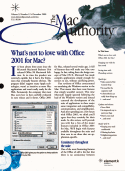 This is an unpaid (well, I hope unpaid…) advertisement for Office 2001. At no point in this “review” did the reviewer mention ONE negative thing about the product. At no time did he/she compare this program with any other competing product, or even the product it is replacing, Office 98.