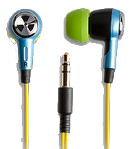 My evaluation Ozone headphones came with blue cord, and the buds were encased in bright red plastic, for quite a nice look. There was no right/left indication. The silicon tips were also blue, and very comfortable. Their wires never tangled. This is rare, and a great quality. The fit was superb, and superior to most that I have tried. They never fell out if I jogged while wearing them.