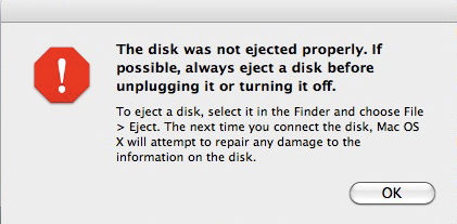 In our day-to-day use, the Key worked very well, with just a few glitches. We chose the "Lock the Desktop" option when the USB key was removed. If you don’t unmount the USB key from the desktop, you’ll get this warning when you pull the USB key when you leave your Mac: