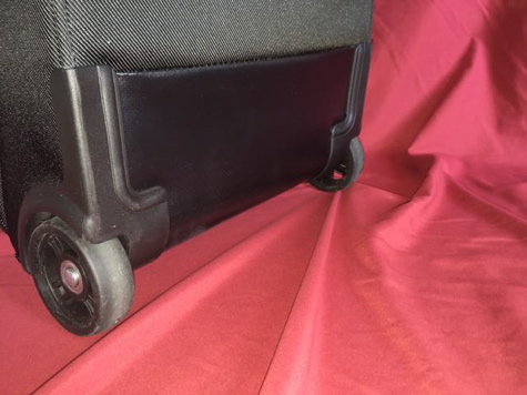 Some of the other nice details of this case are the well-padded handles, one on top and one on the side. There is no handle on the bottom, however the feet down there provide a handhold when you lift the case into an overhead bin. The wheels roll smoothly over different surfaces. During my testing, I encountered rough sidewalks and brick pavers, neither of which slowed my travel. The area between the wheels is reinforced with a heavy vinyl material that protects the bag.
