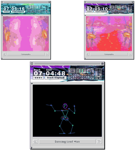 While the Onadine player controls the audio CD the same as any CD player, there’s also a window which displays the Onadime Compositions, a collection of colorful, artistic shapes that move in sync with the music. Some of the Compositions are even interactive, responding to the movements of your mouse or keyboard. These are all beautiful and fascinating to actually see, and will blissfully occupy a great deal of your time at your Mac.