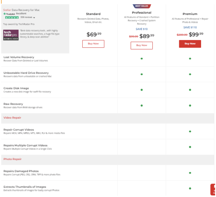 For professional data recovery work, a paid plan among the 3 listed below will unlock Stellar Data Recovery for Mac’s full potential.