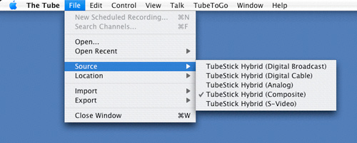 Once you have connected the hardware, you need to install and update The Tube software and then select your video source: