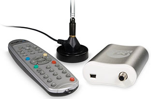 A box slightly larger than a pack of cigarettes, an extendable antenna, a remote, and two cables. That’s all there is to the TVMini HD from Miglia, the company that is bringing television to your Macintosh.
