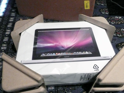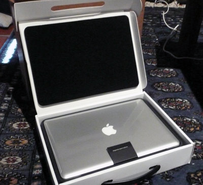 OK, I knew that Apple was cutting down on packaging, but this box was only 10’ long, 7’ wide, and 3.5’ high. Was some assembly required on the new computers? 🙂 Unfortunately, this was not the computer, only the update to MobileMe I had ordered, that for some reason, they shipped separately. SIGH!