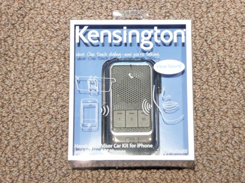 Kensington’s hands-free visor car kit for iPhone and Bluetooth® phones. The basic idea is one touch dialing for 3 favorite numbers, hands free calling, never touch your phone, and a high quality speaker and microphone on the visor right in front of your face for easy accessibility and sound pick up. Was awarded an iProng Best of Show for Macworld 2009. Full review coming soon to these pages, stay tuned. But now, for the UnBoxing….
