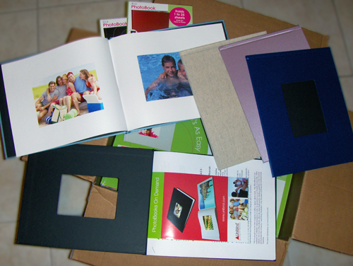 You know those Photobooks you can order via iPhoto that Apple used to talk about all the time but never mentions anymore? That’s what this reminds me of. The black photobook has informational pages, while the teal one is a sample with very nice pictures. The other three, blue, pink, and beige, are empty.
