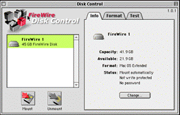 Installation is simple. Run the installer from the included CD (it comes with both a Mac and PC CD-ROM installation disc) connect the unit to your computer, and restart. You do have to format the hard drive, but the installation program also installs a great controller Firewire Application called “FireWire Disk Control” which will make that a breeze.