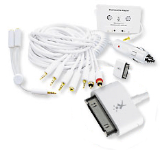 The XtremeMac Get connected kit had what I needed for the car, plus a replacement cable for the kitchen radio, another adaptor that would hook up to my stereo, an extension cable, plus a line splitter so two people could listen through headphones to the same iPod. The last would be good if I ever get back to the gym with my wife, and we manage to agree on the same music selection (not likely.)